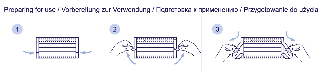 Thanks to the internal filter layer with a minimum filtration degree of BFE ≥ 98% of biological aerosols, they protect against droplet-borne infections. The masks are characterised by high air permeability and have a special nose modeling insert (nose bow). Soft and flexible ear holders allow the mask to be attached on the face, and the delicate nonwoven of which they are made does not irritate or cause pressure. The masks meet the requirements of the EN 14683 standard for type II.