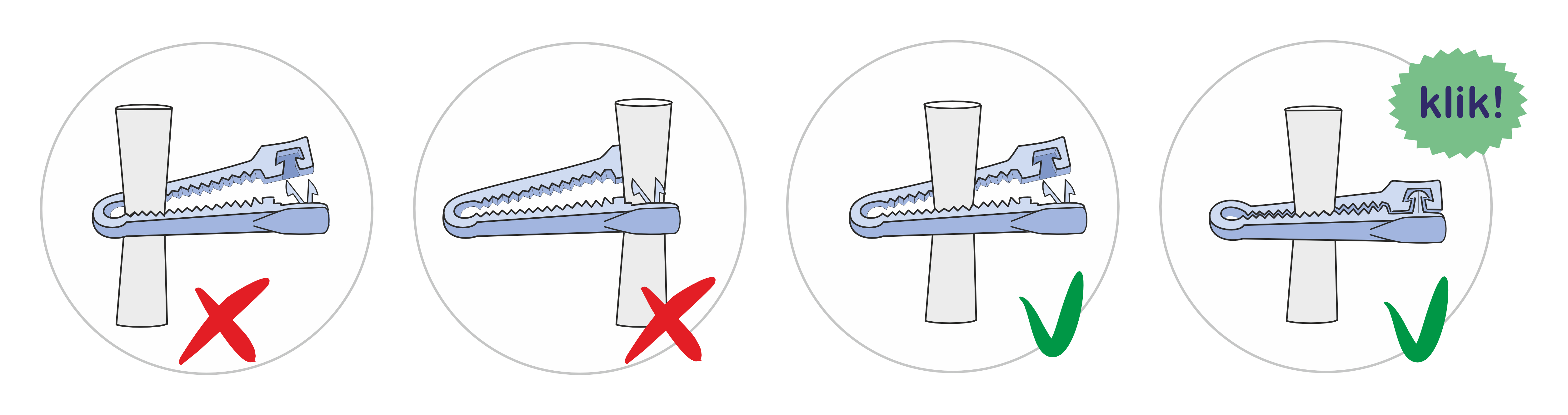 necessary to fold it before applying the clamp to obtain greater resistance when locking the clamp. - Place the cord in the very middle of the clamp body.