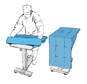 Apply the Mayo table cover (in form of a bag with a cuff).