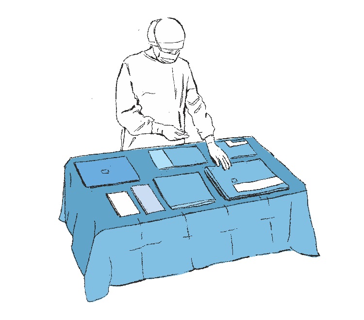 Before starting to drape the patient (determination of the surgical field), pay attention to the direction in which the drape is unfolded with the help of the pictograms on the drape.